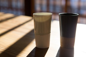 磁器土を使い薄く軽量で作られています。冷茶、ビールなど冷たいお飲み物におすすめです。
